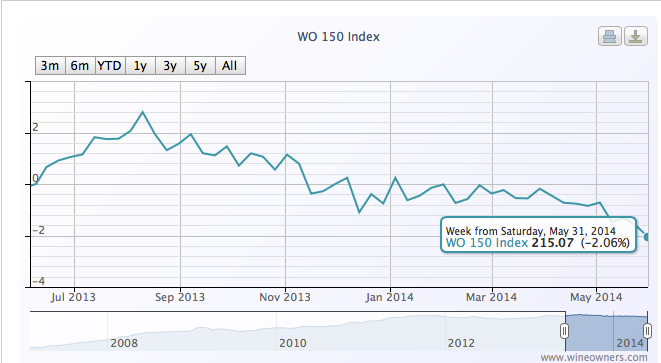 Since Wine Owners opened its doors to fully integrated portfolio management and trading last June, the WO 150 index, with its heavy weighting towards Bordeaux, had fallen -2.06%, and since its August 17th 2013 12 month high, -4%. What’s pulled it down is predominantly a slew of classed growths.